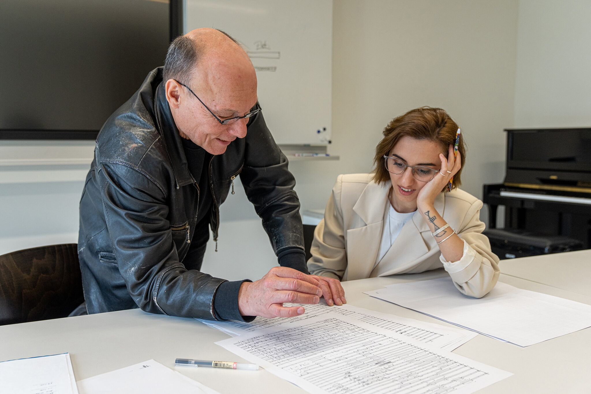 Auch Studentin Aregnaz Martirosyan arbeitet besser, wenn sie bereits einen Kompositionsauftrag in der Tasche hat. Die 29-jährige Armenierin macht keinen Hehl daraus, dass sie ehrgeizig ist: «Ich will Erfolg haben», sagt sie, «nicht nur an einem Ort, sondern auf der ganzen Welt.» Noch während ihres Bachelorstudiums in Armenien hörte sie über Freunde von Ammanns Wirken in Luzern und nutzte ein Austauschsemester, um sich ein Bild zu machen. Sie blieb für den Master Komposition. Sie schätzt die Theorieseminare, die sie in Luzern absolvieren konnte, etwa die Analyse wichtiger Werke des 20. und 21. Jahrhunderts, das Seminar zur Kompositionstechnik Bachscher Solowerke oder das für kommerzielle Kompositionen. Auch sie folgt ihrem eigenen Weg und zeigt, dass Ammann lebt, was er predigt: «Er vertraut mir. Ich kann machen, was ich will und was ich fühle. Er setzt mir keine Grenzen. Ich habe von ihm gelernt, selbstsicher nicht nur im Leben, sondern auch in meiner Musik zu sein.»